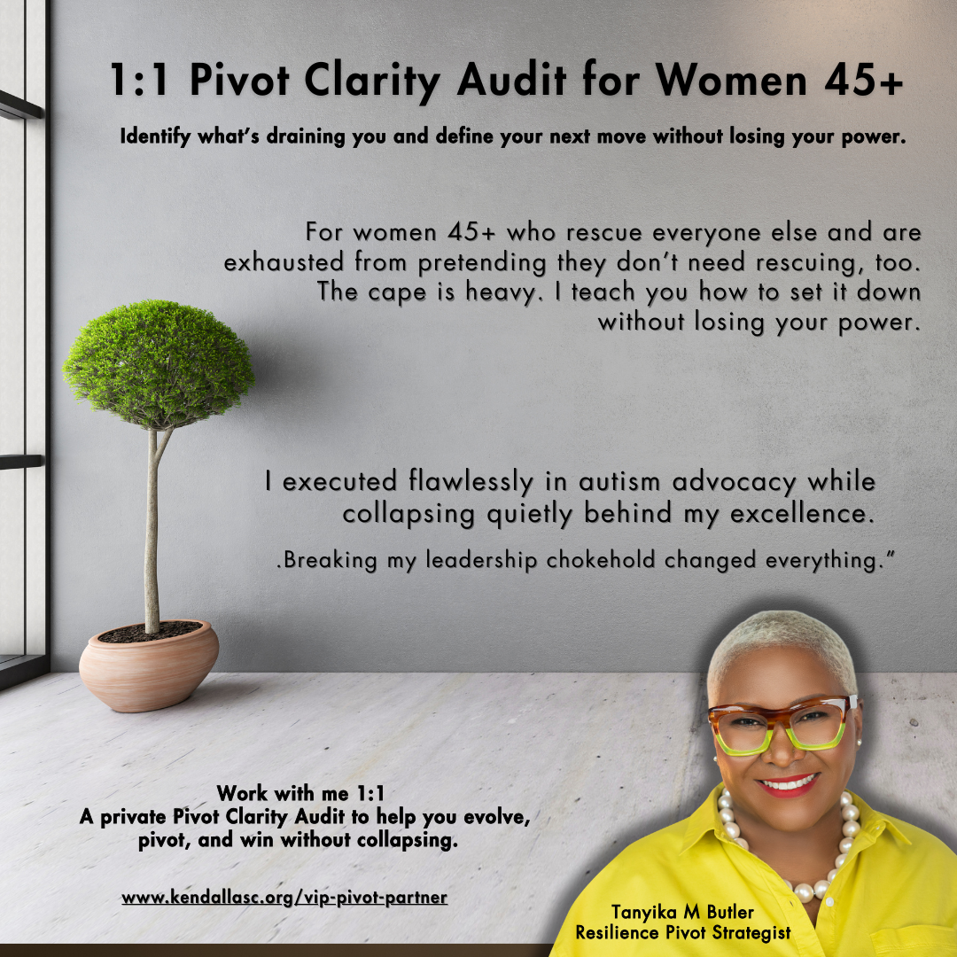 This is a 90-minute Image-Safe Pivot Audit™ designed for high-achieving women 45+ who feel the shift but refuse to jeopardize their identity, authority, or reputation in the process.
